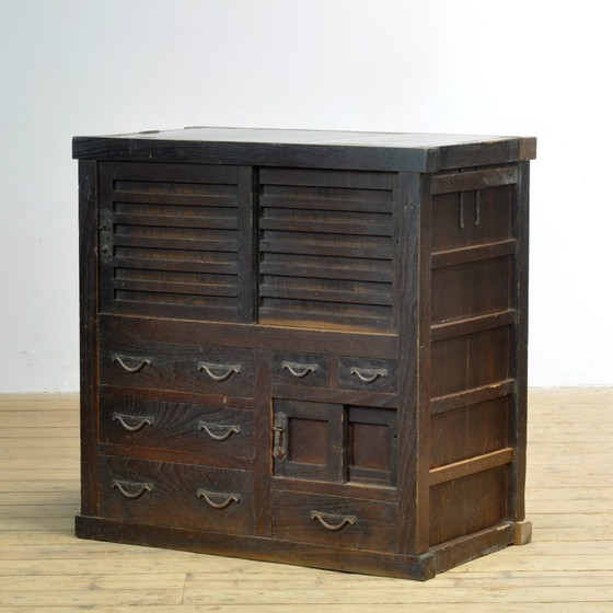 À la fois fonctionnelle et charmante, cette Tansu offre un espace de rangement polyvalent, idéal pour ranger documents ou objets personnels. Elle apporte une touche historique unique à tout intérieur, qu'il soit moderne ou classique.