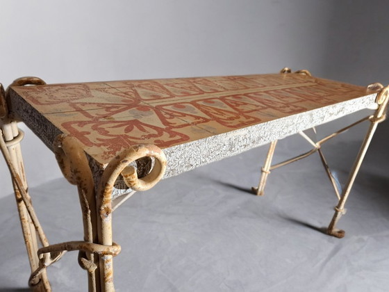 Transformez votre espace avec cette console unique en fer forgé, typique du milieu du XXe siècle. Restaurée avec expertise par l'atelier Bruno Gonçalves, elle présente un plateau en résine sur mesure et une patine vintage stabilisée. Un mariage parfait entre histoire méditerranéenne et design moderne et durable.
