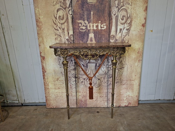 Cette élégante console murale en laiton, surmontée d'un raffiné plateau en marbre, sublimera votre entrée ou votre couloir. Son design classique dégage un charme intemporel et apporte une touche de luxe à votre intérieur.