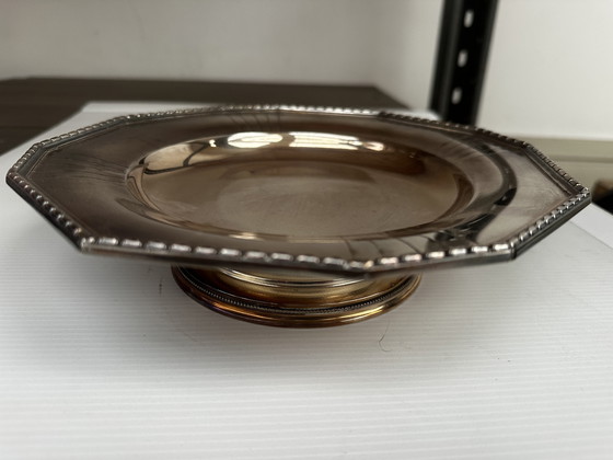 Coupe - Centre de Table Art-Déco en Métal Argenté Forme Octogonale