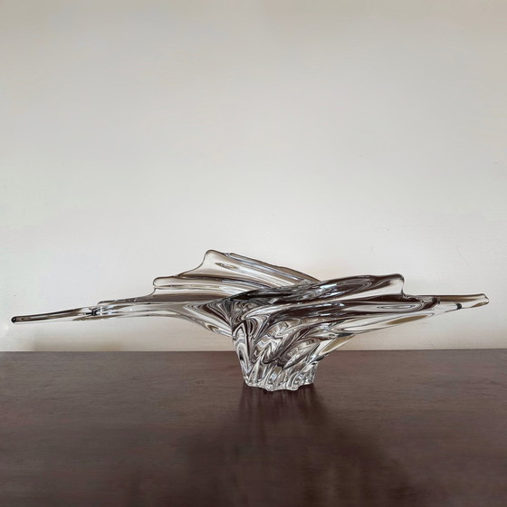 Belle grande coupe (vide poche, coupe à fruits ou centre de table) en cristal de Vannes des années 60/70, très bon état général Longueur: 57cm Largeur: 16cm Hauteur: 14,6cm Poids: 2,6kg Envoi rapide et soigné