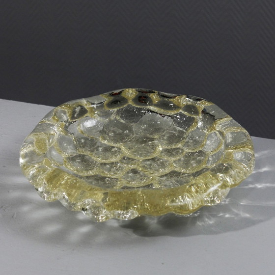 Belle coupe nid d'abeille par Pierre d'Avesn de teinte jaune présentant une originale texture au verre.