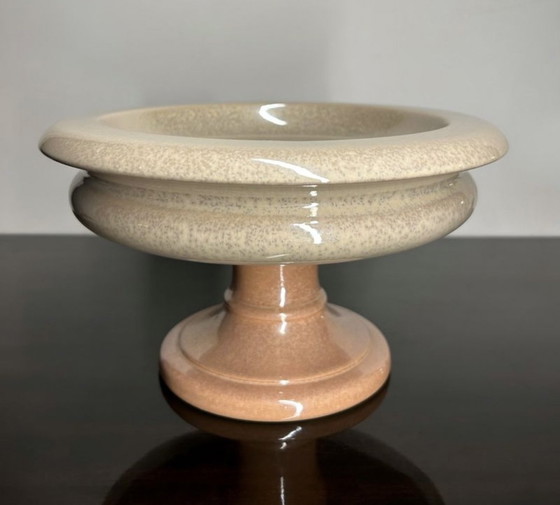 Très belle coupe sur pied (centre de table ou grand vide poche) en céramique bi color des années 80 par François Châtain, excellent état Hauteur: 15cm Diamètre: 26cm Poids: 1,8kg Envoi rapide et soigné