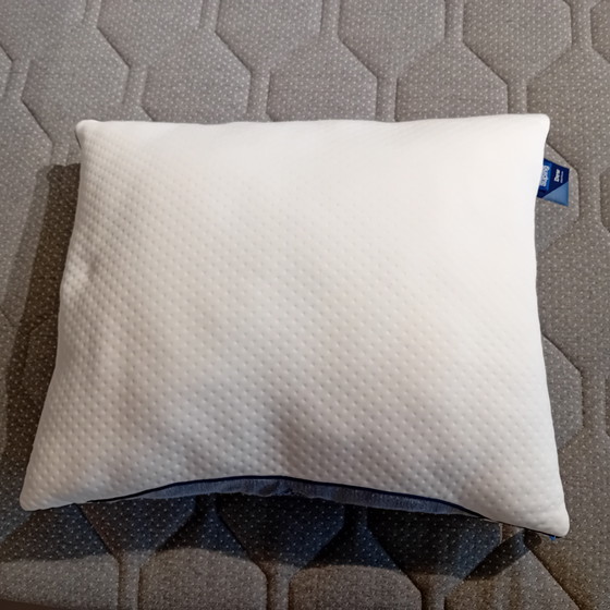 Oreiller Auping Dew - Oreiller synthétique 60x70 cm. Vous aimez donner du gonflant à votre oreiller, mais vous n'êtes pas fan des oreillers en duvet ? L'Auping Dew est fait pour vous. Cet oreiller moelleux se modele à votre guise et se ferme facilement grâce à son ouverture de remplissage. Un oreiller ferme à regonfler. Convient aux personnes allergiques aux acariens. Hypoallergénique et lavable en machine. 100 % recyclé, donc plus respectueux de l'environnement. Convient aux personnes dormant sur le côté, sur le dos ou sur le ventre. Remarque : Cet oreiller a servi de modèle d'exposition. Il est par ailleurs en excellent état.