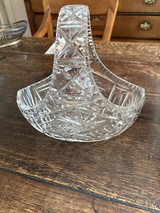Cette magnifique corbeille à fruits en cristal des années 1950 est une pièce intemporelle qui respire l'élégance et la sophistication. Ses motifs taillés complexes captent magnifiquement la lumière, ce qui en fait une pièce maîtresse éblouissante pour toute table à manger ou vitrine.