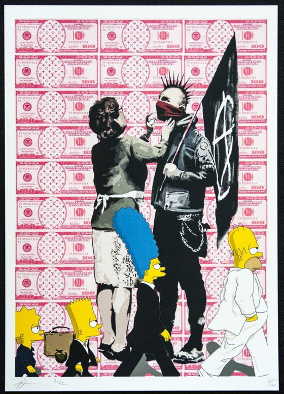 Estampe d'art signée par DEATH NYC avec certificat d'authenticité. DEATH NYC est une artiste de rue new-yorkaise. Son pseudonyme est un acronyme pour « Don't Easily Abandon the Hope » (Ne perdez pas espoir facilement). Estampe estampée à sec, accompagnée d'un certificat d'authenticité signé par DEATH NYC et d'un autocollant Gold Seal. Dimensions : 45 x 32 cm. Signée à la main. Excellent état. Vendue sans cadre.