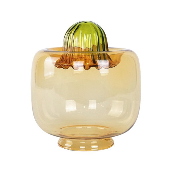 Elle est réalisée en verre aux nuances ambrées et vertes. Sa forme organique allie fonctionnalité et esthétique, ce qui en fait un objet vintage de collection.