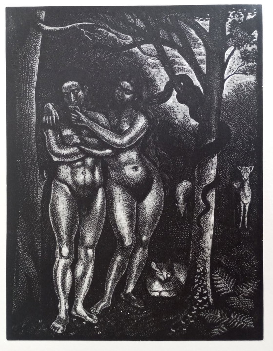 Demetrios Galanis 'Adam et Eve' gravure sur bois art-déco Milton 'Paradise Lost' 1930's--32x24cm, sur papier crème, en parfait état. Il existe également une copie au British Museum : https://www.britishmuseum.org/collection/object/P_1949-0411-4579--shipping dans l'UE - 35€ dans le monde - 55€ EXPÉDITION avec courrier prioritaire express et recommandé En tant que vendeur privé, je serai responsable de tout dommage causé à vos marchandises par un emballage défectueux. Je ne suis pas responsable des dommages causés par la faute du transporteur, ni des colis perdus, etc. Selon les lois en vigueur dans l'Union européenne, la responsabilité de la livraison incombe à l'acheteur.