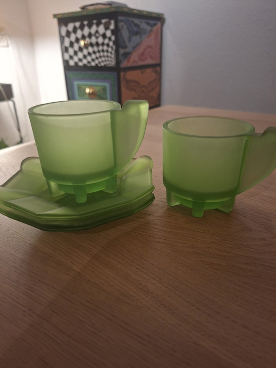 Découvrez le charme unique de ces deux tasses en verre, conçues par le célèbre artiste Bas van Beek. Leur teinte verte éclatante en fait un complément idéal pour une table moderne.