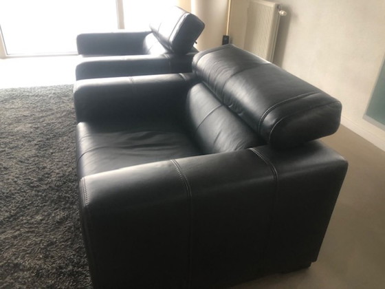 Deux fauteuils en cuir noir avec dossiers réglables
