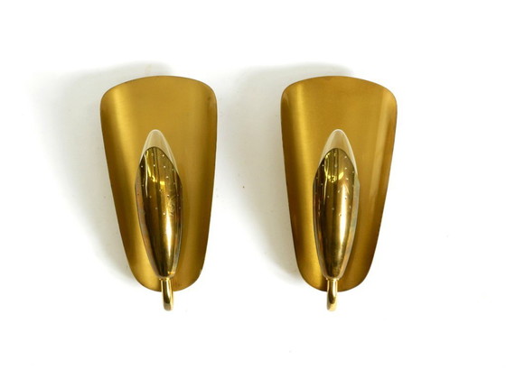 Deux magnifiques appliques murales coniques en laiton, typiques du design moderne du milieu du XXe siècle.