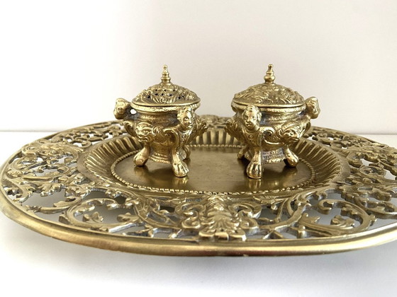 Double Encriers sur Plateau Bronze Doré Ciselé Style Louis XV Epoque Napoléon III