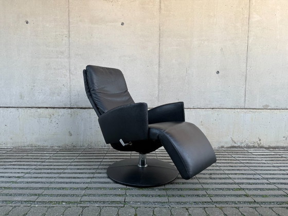 Le fauteuil Aston se distingue par ses deux coussins de dossier séparés. Cet effet est accentué par les accoudoirs chromés, légers et recouverts de cuir. Les deux coussins de dossier, de densités différentes, offrent un confort optimal. Ce modèle est disponible avec différents mécanismes. L’appui-tête est réglable en plusieurs positions. La suspension de l’assise est à ressorts Nosag. Le cuir est orné de doubles surpiqûres décoratives. Disponible avec un piètement étoile en métal ou un piètement disque en cuir.
