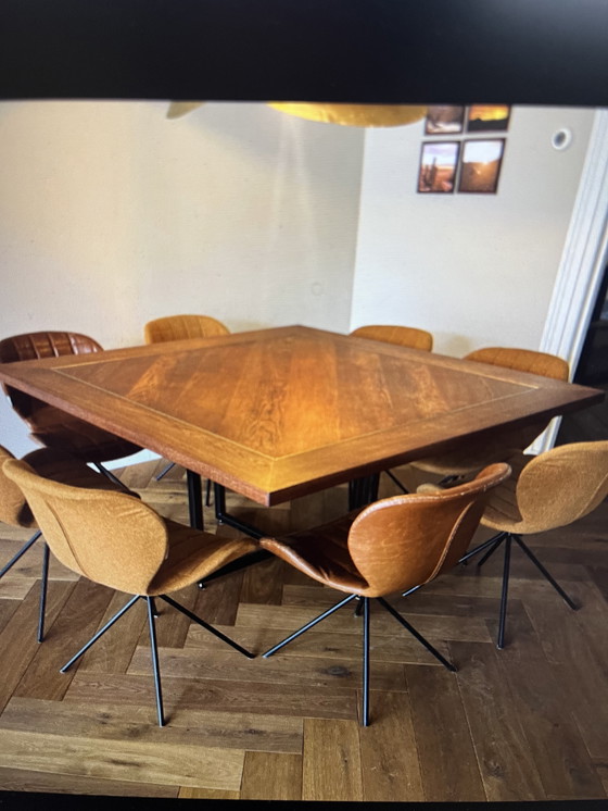 Cette exquise table de salle à manger en chêne, rehaussée de détails en laiton, apporte une touche sophistiquée à votre intérieur. Sa riche teinte brune et son design moderne en font une pièce polyvalente qui s'harmonise avec différents styles de décoration.
