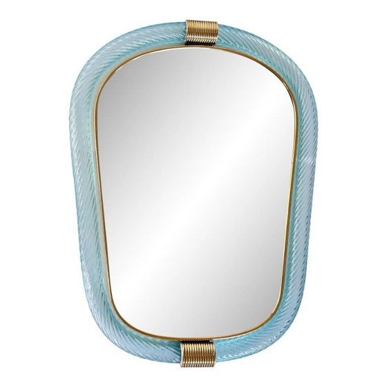 Élégant miroir vénitien bleu azur en verre de Murano, style Torciglione Torchon – Inspiré de Barovier