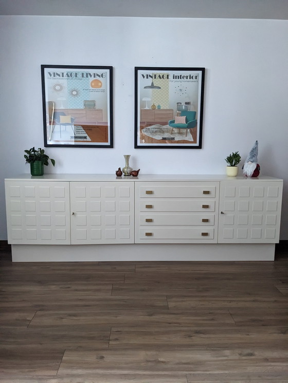 Découvrez l'élégance intemporelle de cette enfilade vintage Musterring, une pièce maîtresse qui apportera une touche de sophistication à votre intérieur. Avec son design épuré et ses lignes géométriques, elle s'intègre parfaitement dans un décor moderne ou classique.
