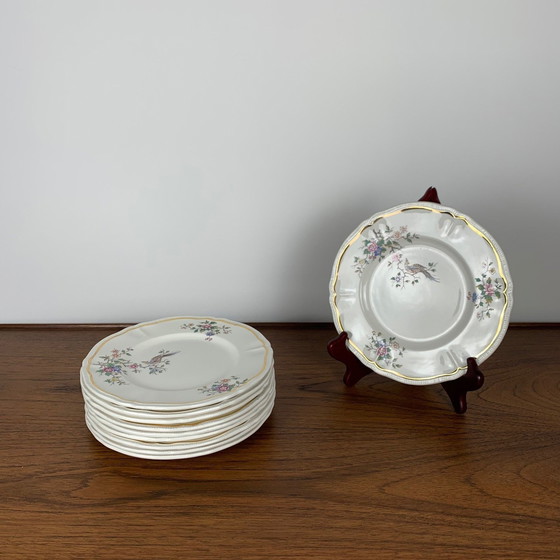 Ensemble de 10 assiettes à dessert, modèle "Chantilly" par Longchamp, 1950/60