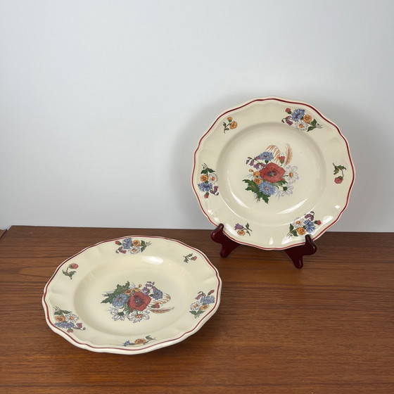 Ensemble de 2 assiettes creuses de Sarreguemines, modèle "Agreste", 1920/50