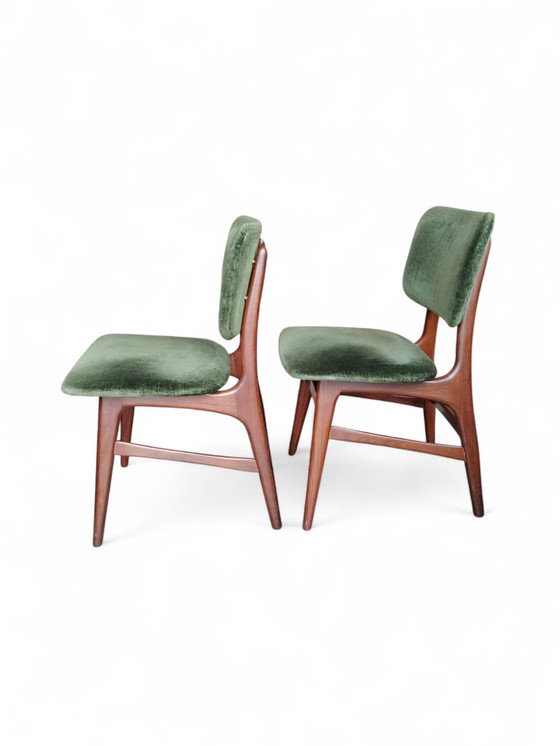 Ensemble de deux magnifiques chaises de salle à manger en teck de style scandinave.
