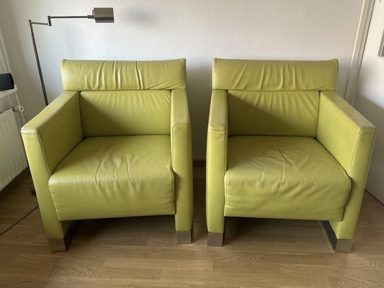 Ensemble de 2 fauteuils Artanova – Design suisse – Cuir vert citron de haute qualité