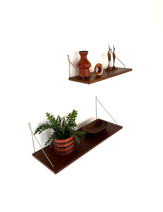 Ensemble de 2 étagères murales vintage en teck, années 1960.