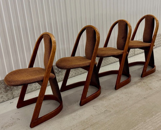 Chaises Art Déco vintage. Structure en bois massif avec revêtement d'origine. Modèle des années 1970. Ces chaises de salle à manger rétro sont en bon état d'origine. Le revêtement est en très bon état. Il s'agit d'articles d'occasion qui peuvent être examinés avant l'achat.