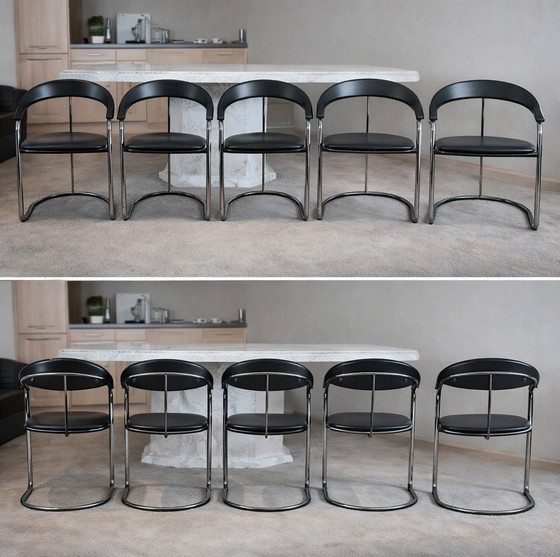 Ensemble de 6 chaises cantilever design italiennes – Chrome et noir – Fabriquées en Italie