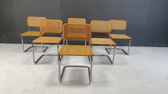 Ensemble de 6 chaises Cesca de style Marcel Breuer, fabriquées en Italie, années 1970