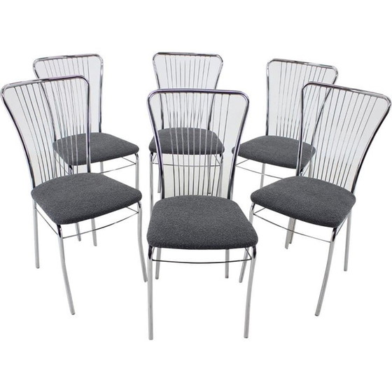 Ensemble de 6 chaises de salle à manger italiennes en tissu bouclé, 1970