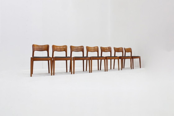 Ensemble de 7 chaises à repas vintage danoises Niels Koefoed en teck 1960