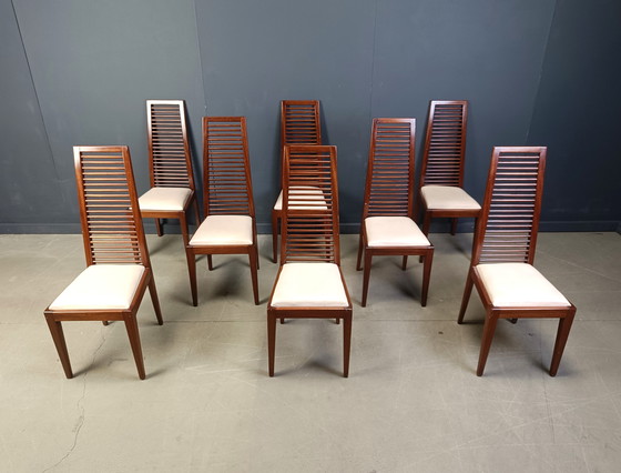 Ensemble de 8 chaises de salle à manger italiennes à haut dossier, années 1980