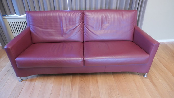 Canapé 3 places Leolux Paian, revêtu de cuir Senso Granata.
