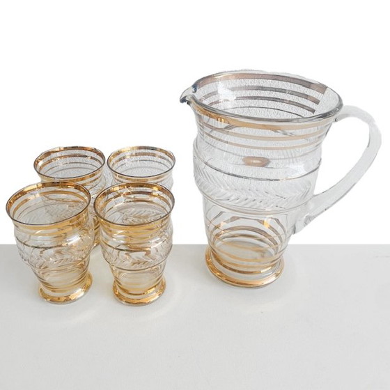 L'ensemble se compose d'un grand pichet et de quatre verres à limonade.