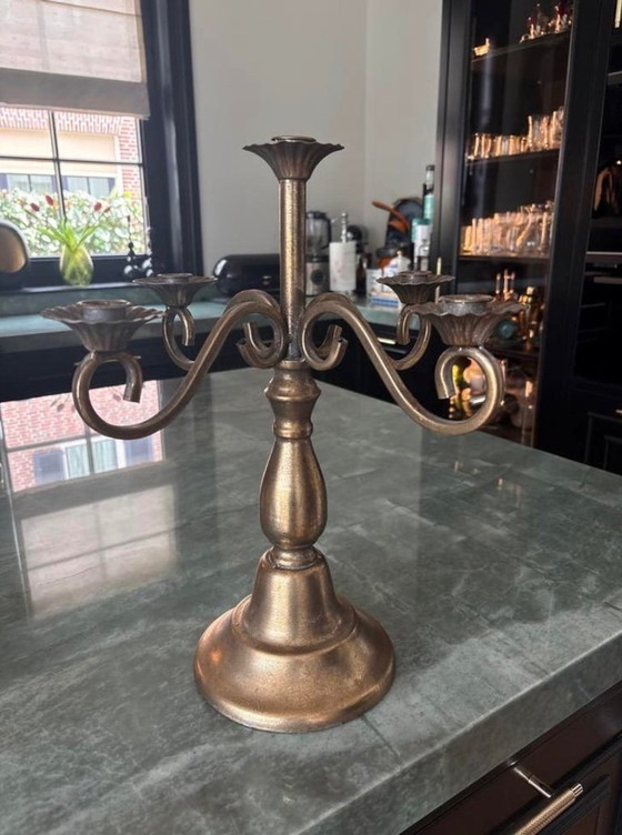 Ce magnifique ensemble de deux chandeliers anciens en cuivre apportera une touche d'élégance à votre intérieur. Chaque chandelier possède cinq branches, diffusant une lumière douce et chaleureuse. Fabriqués en cuivre, ils arborent une superbe patine qui témoigne de leur âge et de leur caractère. Parfaits pour une table à manger, une cheminée ou comme élément décoratif dans un décor classique ou champêtre. Les chandeliers sont en bon état, présentant de légères traces d'usage, normales pour leur âge.