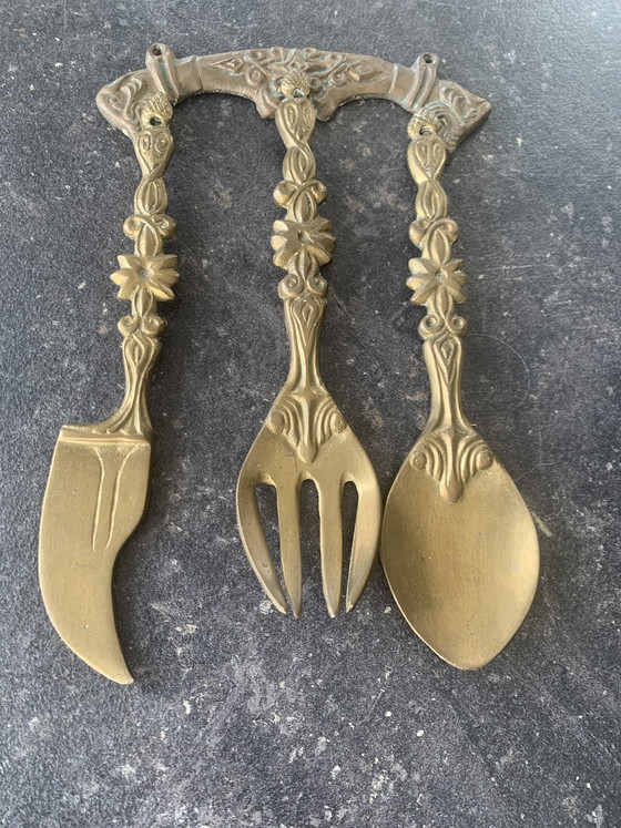 Ce magnifique service de couverts vintage est une véritable pièce maîtresse pour toute cuisine ou salle à manger. Avec ses détails raffinés et son allure classique, il apporte une touche d'élégance à votre intérieur. Fabriqué en laiton de haute qualité, il est à la fois durable et intemporel. Idéal comme élément décoratif mural ou comme cadeau unique pour un amateur d'antiquités. Contactez-nous dès aujourd'hui pour plus d'informations sur cette pièce exceptionnelle.