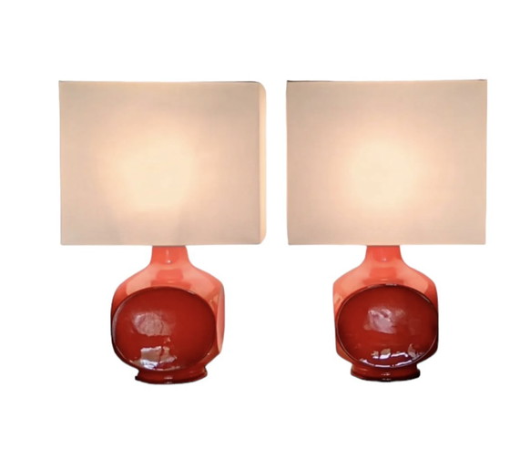 Ensemble de lampes de table en céramique orange par Cari Zalloni, Italie, années 1970