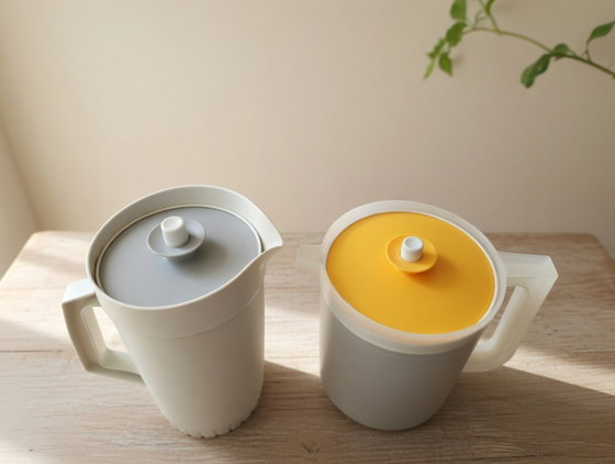 À vendre : un magnifique ensemble de deux pichets Tupperware classiques de la collection vintage. Les deux pichets sont en bon état, sans fissures ni traces d'usure importantes, et sont parfaitement fonctionnels.