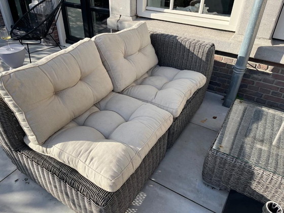 L'ensemble de salon Arbrini Curve offre une solution d'assise élégante et confortable pour les espaces extérieurs. Composé de quatre places assises et d'une table assortie, cet ensemble est idéal pour des moments conviviaux au jardin. Les coussins Kees Smit, achetés l'an dernier, apportent un confort supplémentaire et une touche de fraîcheur.