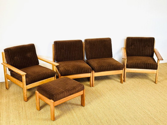 Ensemble de Salon modulable Vintage en Chêne et Velours Côtelé, 1960s, Set de 5
