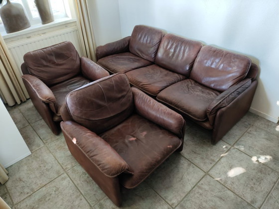 Ensemble de salon vintage De Sede - canapé 3 places + 2 fauteuils - cuir de buffle épais - 1970