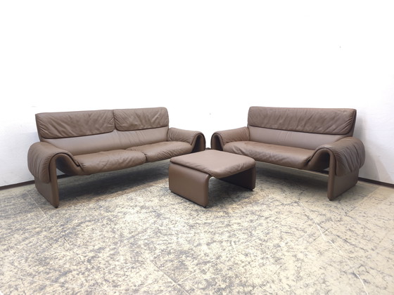 Il s'agit d'un ensemble canapé De Sede DS 2011 composé d'une grande causeuse, d'une petite causeuse et d'un repose-pieds.