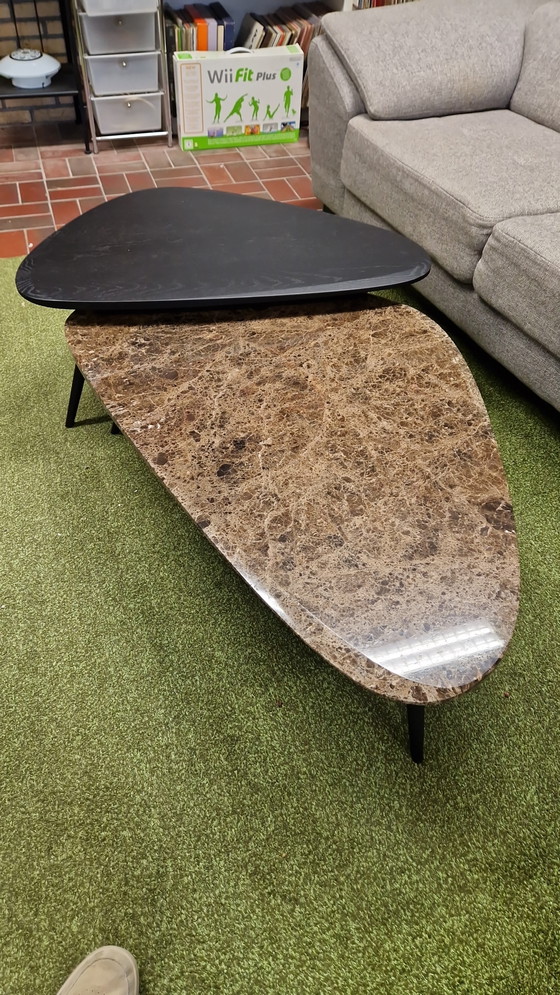 Ensemble de tables basses Leolux Iduno – Marbre Emperador Marron et chêne Santos