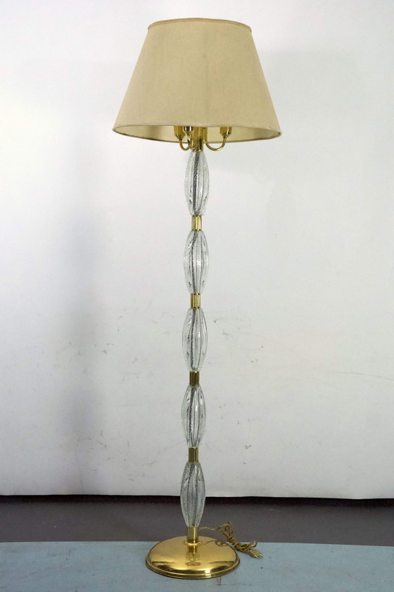 Ercole Barovier, rare lampadaire Bullicante en verre de Murano et laiton. Italie 1940S