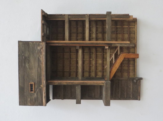 Sculpture murale originale en bois teinté. Artiste : Eric van Solm. Formation : Willem de Kooning Rotterdam, 1980-1985, Département de design plastique et spatial. Inscrit au R.K.D.