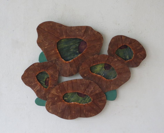 Œuvre murale unique en bois peint. Artiste : Eric van Solm. Formation : Willem de Kooning Rotterdam, 1980-1985, Département de design plastique et spatial. Inscrit au R.K.D.