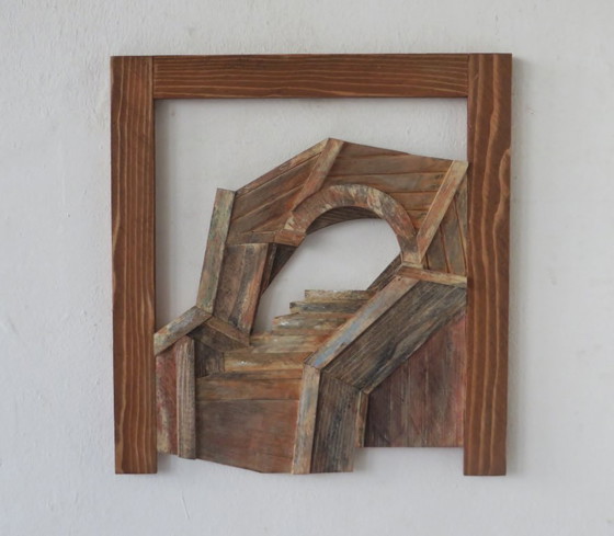 Œuvre murale unique en bois peint. Artiste : Eric van Solm. Formation : Willem de Kooning Rotterdam, 1980-1985, Département de design plastique et spatial. Inscrit au R.K.D.