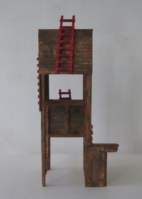 Sculpture originale en bois teinté. L'artiste est Eric van Solm. Formation : Willem de Kooning Rotterdam, 1980-1985, Département de design plastique et spatial. Inscrit au R.K.D.