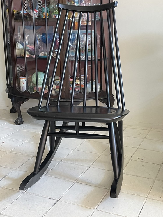 Fauteuil à bascule Artek original en bouleau massif noir à vendre. Légères traces d'utilisation (voir photos).