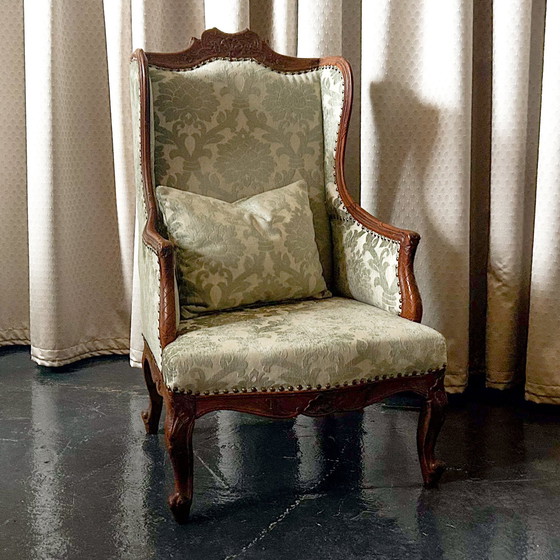 Découvrez le charme intemporel de ce fauteuil ancien - fauteuil à oreilles, construit vers 1900, qui n'est pas seulement un meuble, mais qui apporte aussi un morceau d'histoire dans votre maison. Imaginez-vous en train de vous détendre dans ce fauteuil exquis - la combinaison parfaite de confort et de style vous enveloppe et vous invite à vous attarder. La fabrication magistrale en bois de chêne de qualité supérieure et les sculptures réalisées avec amour confèrent à ce fauteuil un caractère unique qu'on ne retrouve dans aucun meuble moderne. Avec son tissu de manufacture anglaise noble et retapissé, chaque moment passé assis devient une expérience luxueuse.