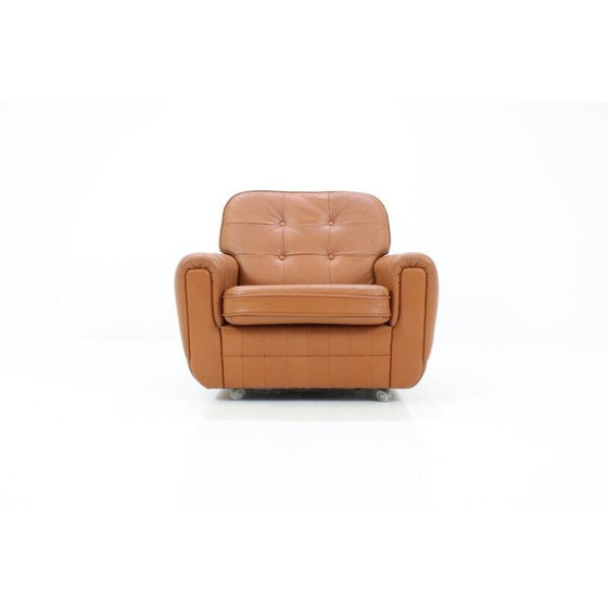 Fauteuil à roulettes en cuir marron clair du Mid Century - années 1970